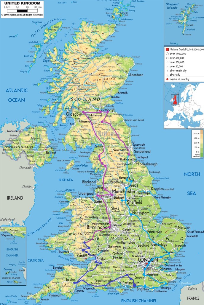 I am cycling roughly a 3000 km loop, although I haven’t fully planned the exact roads and routes that I’ll use. The loop sees me work my way down to Exeter, back to bristol, and into wales. From there I head up the west of england via Liverpool, Manchester and the Lakes. I’m planning to cycle up into Scotland to visit Glasgow and Edinburugh, before coming back down the east of England, into London and back to Shoreham.